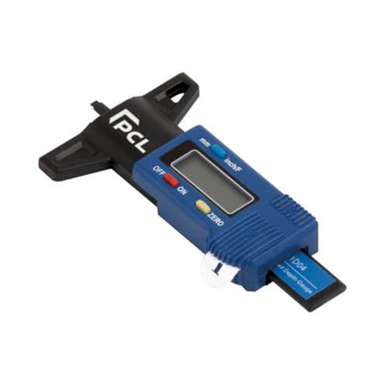 A straightforward and simple to use Digital Tread Depth gauge measurement device with three different read settings – measures in mm, inches (decimal), or inches (fraction). PCL’s Digital Tread Depth Gauge is suitable for tire tread depth or brake shoe and pad wear. A necessary tool for shops and enthusiasts’ tool boxes.